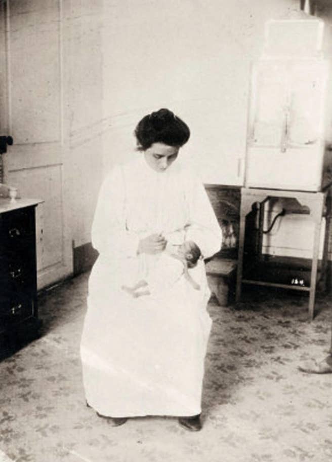 “The only objection to this is the possibility of the mother falling asleep and allowing the child to lie with the nipple in its mouth for several hours at a time.”