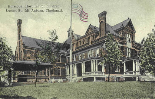In 1883, Cincinnati Children’s Hospital, originally called the Protestant Episcopal Hospital, began as a philanthropic project Mrs. Robert Dayton, Isabelle Hopkins, and Mary Emory. With the financial support of their Episcopal Bishop, Thomas Jaggar, they opened their hospital, at first a small three-bedroom house (which still stands) in the Walnut Hills neighborhood of Cincinnati, at the corner of Park Ave and Yale Street. They quickly realized the need far outstripped their capacity and in 1887, a new hospital was built on land in Mount Auburn purchased by Thomas and J. Josiah Emery, near Christ Hospital.