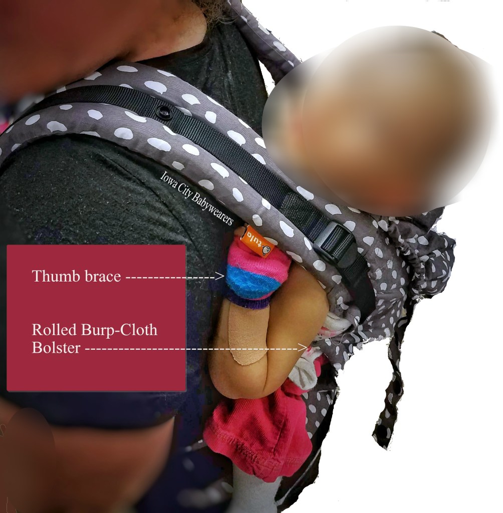 It is important to emphasize that every child with cerebral palsy has unique symptoms and needs. In Emily’s case, Kelsey and I (with almost 30 years of babywearing teaching experience between us) along with Sylvia’s help spent over an hour ensuring that Emily was comfortable and safe in each carry, in each carrier. When babywearing is safe and comfortable for a child with cerebral palsy, it may improve the quality of life for parents, caregivers, and for the children themselves.