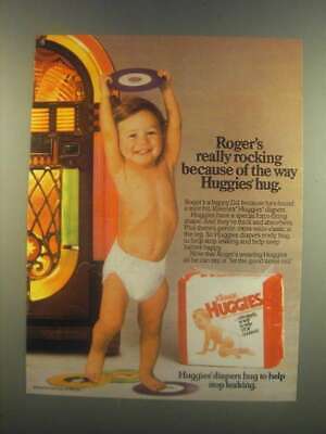 During 1984-5, the Huggies commercials I’ve found were a series featuring toddlers with professions (like a rocker, a cheerleader, or an aspiring advertising executive). They all begin with the toddler sitting on the floor acting sad because they’re in a leaky competitor’s diaper. Yet, once they’re in a Huggies brand diaper they are happy, even dancing around. None of them seems very beauty-contestant-y but who knows, the WAPs seem to have a loose grip on reality.