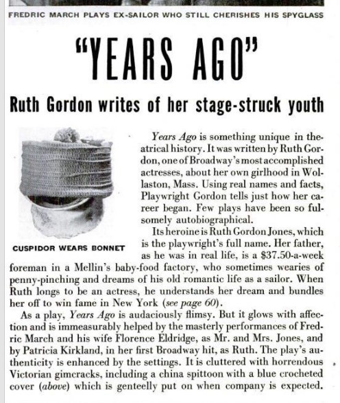 In a Life Magazine article from 1947 about Ruth Gordon’s biopic play Years Ago, they write,