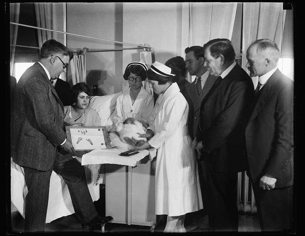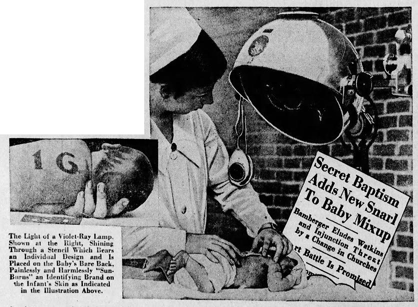 In the 1930s, hospital births were becoming more common in the US, for example, in Chicago in 1930, 55% of births took place in a hospital. It’s likely more would have chosen a hospital birth if they could afford it, or weren’t prevented due to segregation. For efficiency, hospitals used nurseries to care for newborns while their mothers recovered over the course of a week or more. With a bunch of newborns together in a nursery, patient id became a serious concern– especially following high profile mix ups.