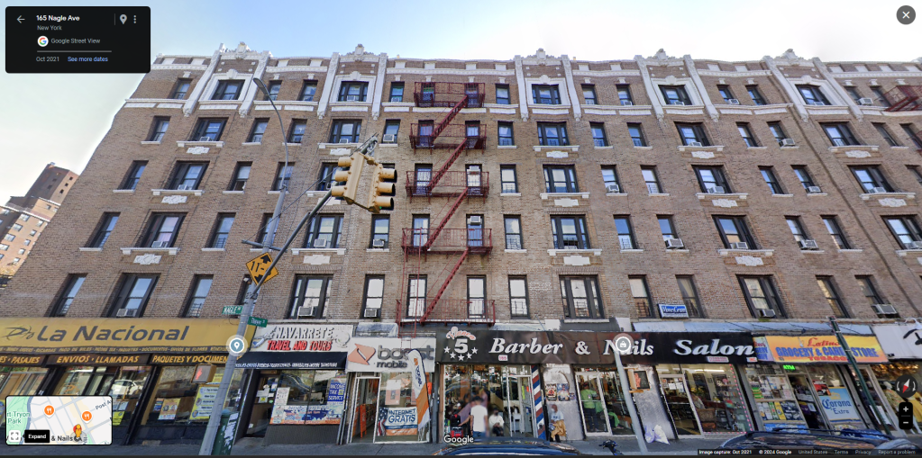 To make the situation more complicated, due to a housing shortage the couple and all three babies moved in with their parents (I couldn’t find whose) apartment. Arris was an active care provider, scrubbing bottles and walking the floor with all three babies in arms. Nora got a massive buggy to hold all three babies together, she called it her ‘jeep’. I can’t imagine having to haul that thing over steps but they figured it out. At least by the time the twins turned five they were living at 165 Nagel Ave, which is still there today: